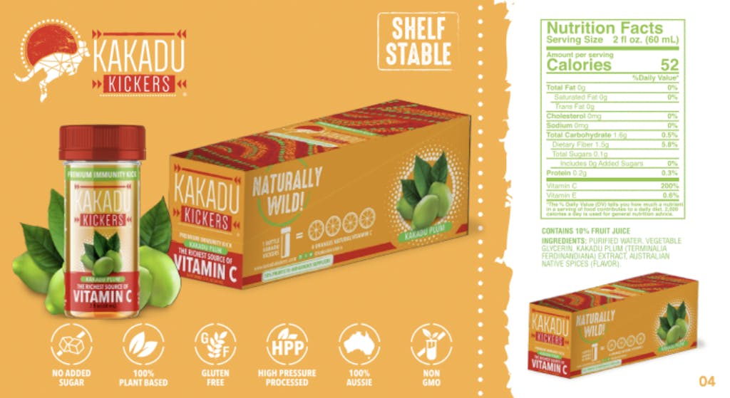 GoWild Australia’s product applications can include foods, supplements, medicinals, nutraceuticals, skin care, hair care, body care products, and beverages all made from the Kakadu Plum. Their most popular product includes Kakadu Kickers Premium Immunity Kick, a 2-ounce immune wellness drink made from the Kakadu Plum. This drink provides an extraordinary natural boost of energy and vitality for a healthy, thirst-quenching “kick-shot” with no added caffeine or sugar.